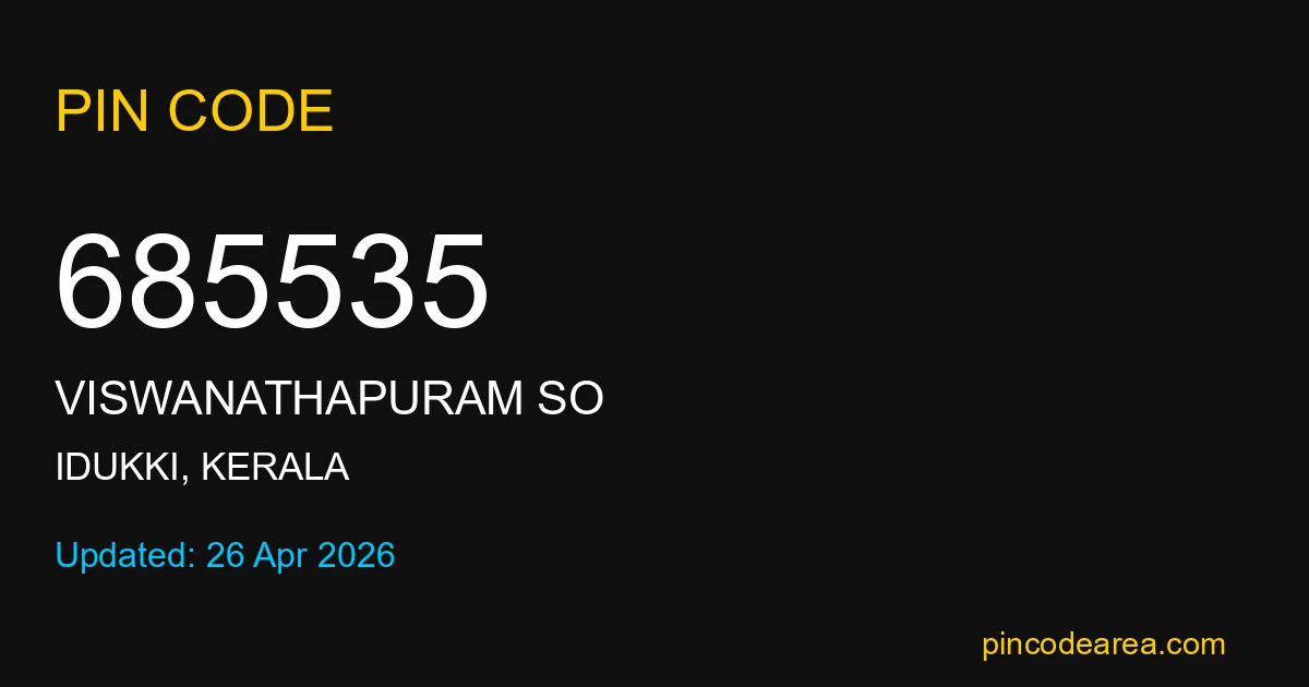 If you are searching for accurate location details, 685535 helps identify the exact postal region of Viswanathapuram SO in Kerala.