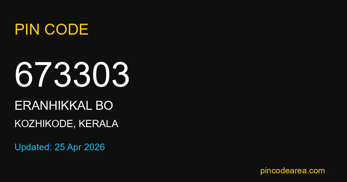 If you are searching for accurate location details, 673303 helps identify the exact postal region of Eranhikkal BO in Kerala.
