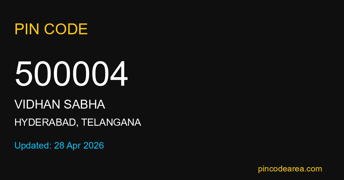 If you are searching for accurate location details, 500004 helps identify the exact postal region of Vidhan Sabha in Telangana.