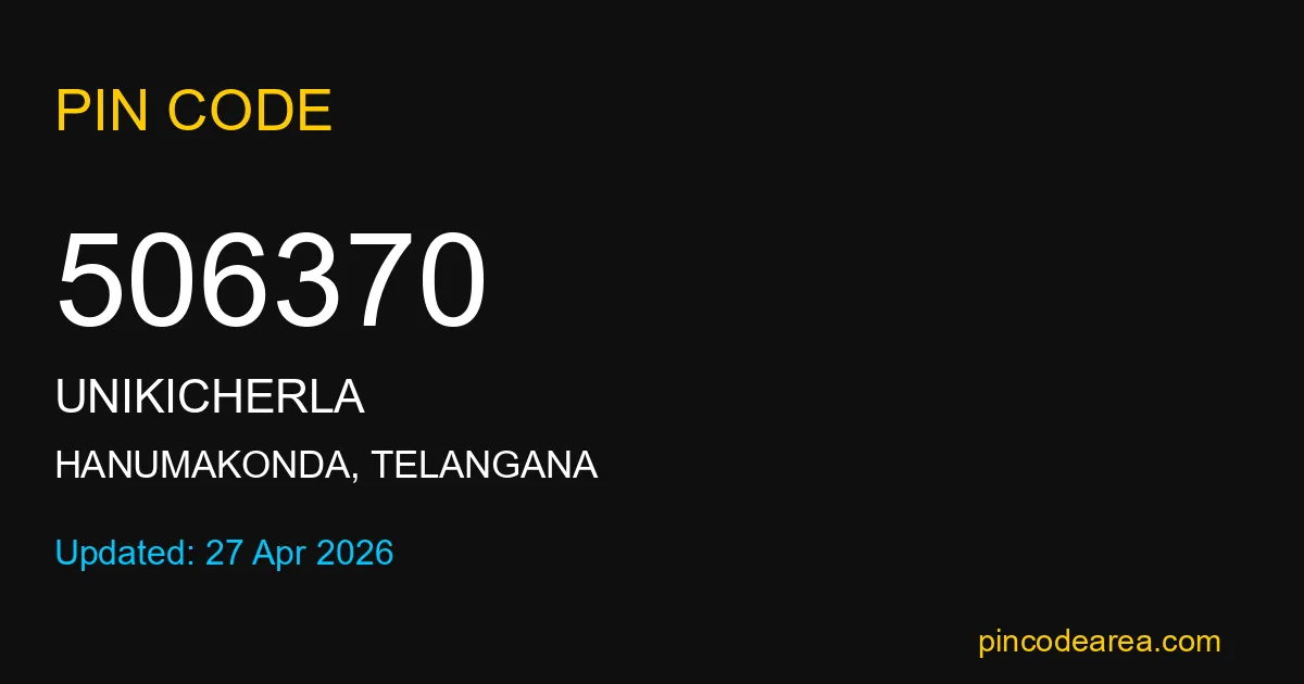 506370 PIN Code is assigned to Unikicherla Post Office located in Hanumakonda district of Telangana. It helps identify the exact delivery area for postal and courier services.