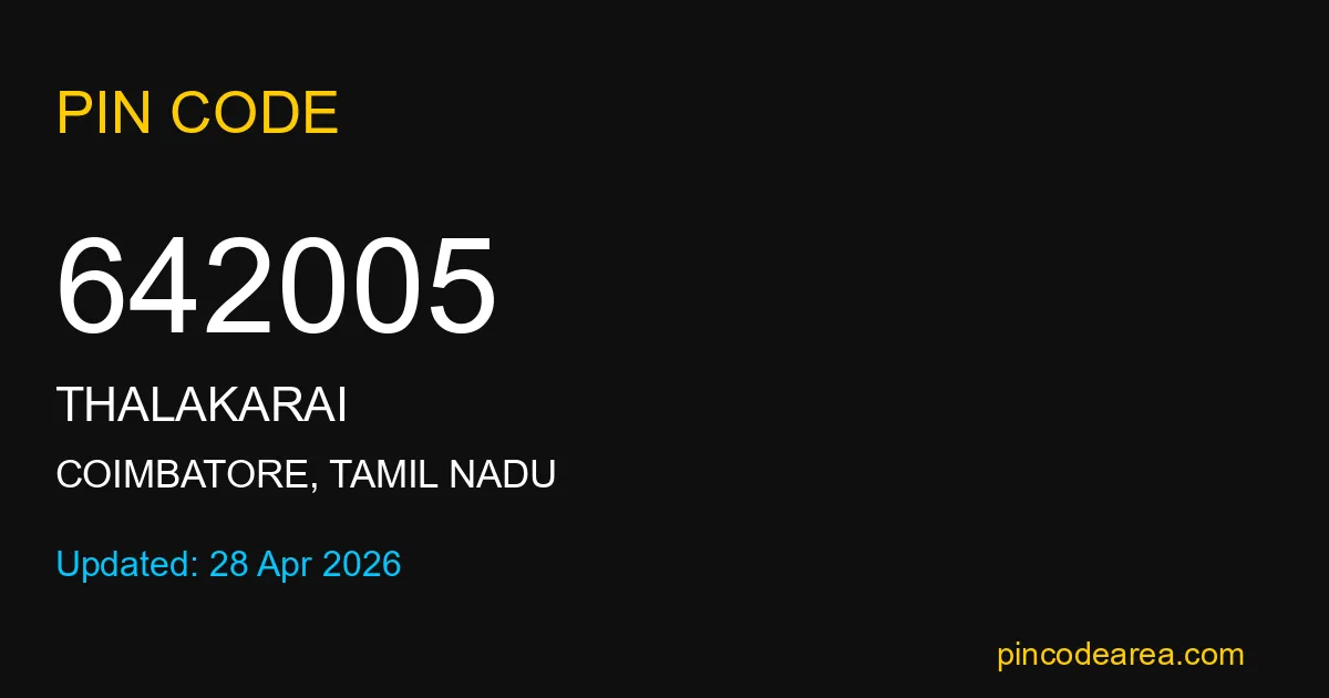 642005 PIN Code is assigned to Thalakarai Post Office located in Coimbatore district of Tamil Nadu. It helps identify the exact delivery area for postal and courier services.