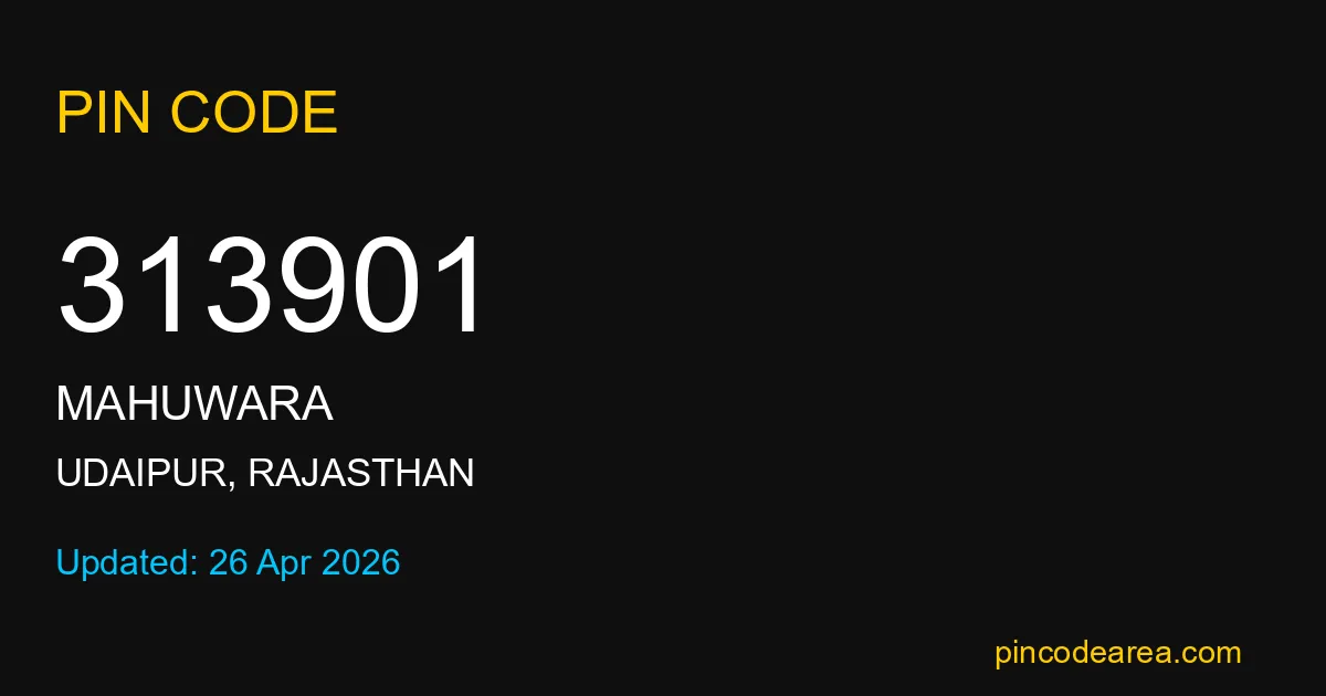 If you are searching for accurate location details, 313901 helps identify the exact postal region of Mahuwara in Rajasthan.